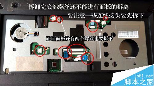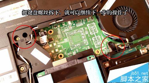 7、再次翻轉筆記本,拆掉鍵盤下的螺絲和連線