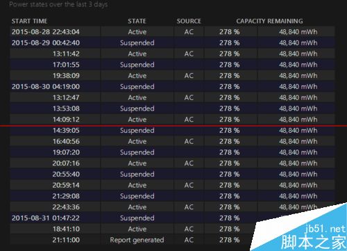 7、第二項是最近三日電池使用情況記錄,包括何時處于活動狀態以及何時進入待機狀態。