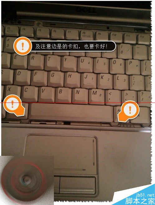8、然后把鍵盤的底部及邊上的卡扣卡好,安裝好鍵盤鎖上螺絲。(安裝就比較簡(jiǎn)單了參上拆卸),如圖
