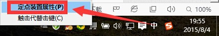 1、找到【任務欄】上的【觸摸板】圖標,然后,鼠標右鍵【點擊】,找到【定點裝置屬性】,打開【鼠標屬性】面板,如圖