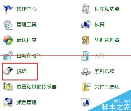 3、進(jìn)入控制面板以后,我們看到如下圖所示的界面,然后找到鼠標(biāo)選項(xiàng),點(diǎn)擊進(jìn)入,如下圖紅色方框所示。