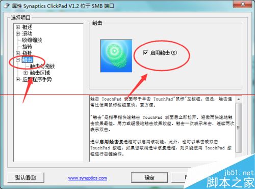 6、點擊進(jìn)入“設(shè)定值”以后,找到并點擊“觸擊”右手邊會出現(xiàn)“啟用觸擊”在前面打?qū)矗蚈K了