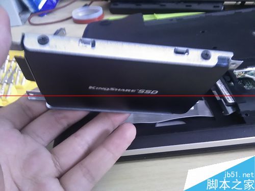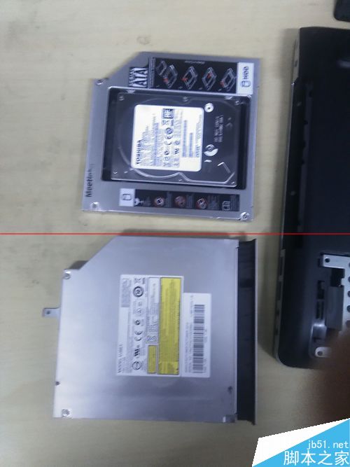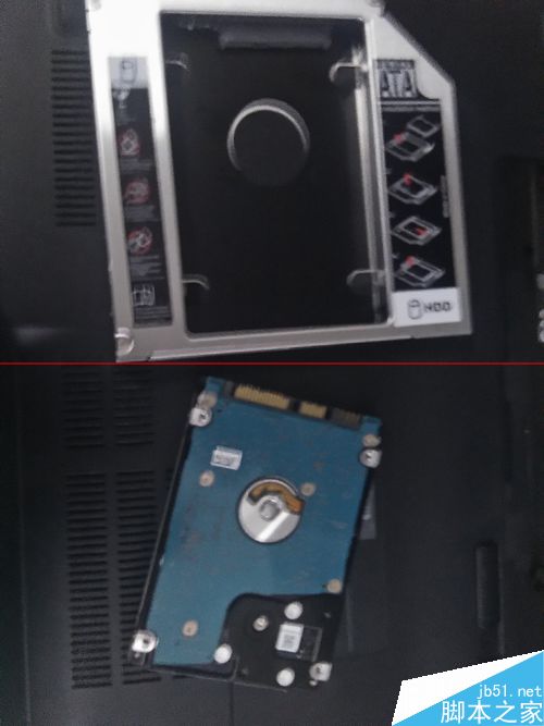 將機械硬盤放入買來的光驅托架擰上螺絲