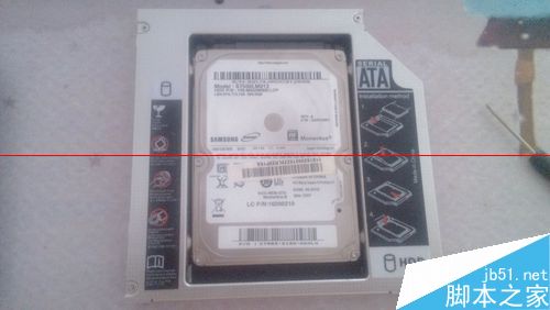 4、將拆下的筆記本硬盤裝入我們購買的光驅架中固定好(兩側有4個固定用的螺絲)
