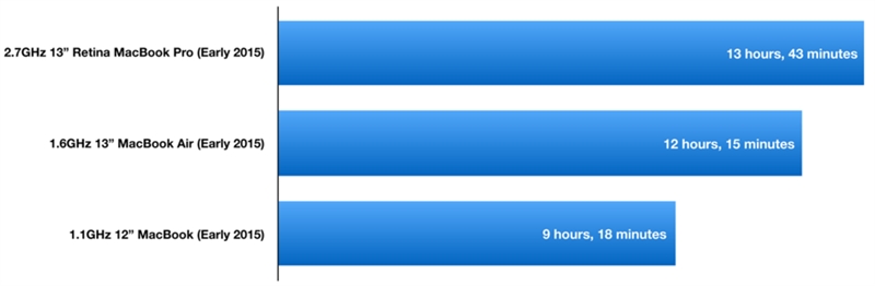 那么實(shí)際情況到底如何呢?Macworld網(wǎng)站近日對(duì)包括13英寸的Macbook Air、Macbook Pro以及12英寸Macbook進(jìn)行了續(xù)航測(cè)試。