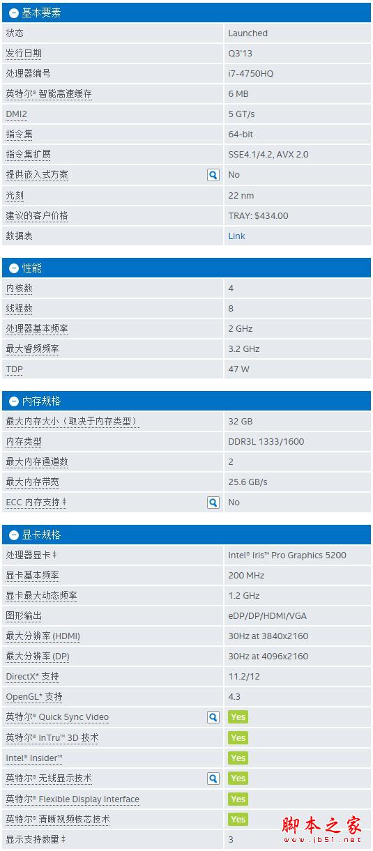 第四代 Intel Core i7-4750HQ 處理器