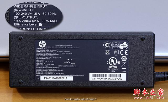 惠普為小蒼本配備了一枚 19.5V 90W 電源適配器,適配器由群光代工。