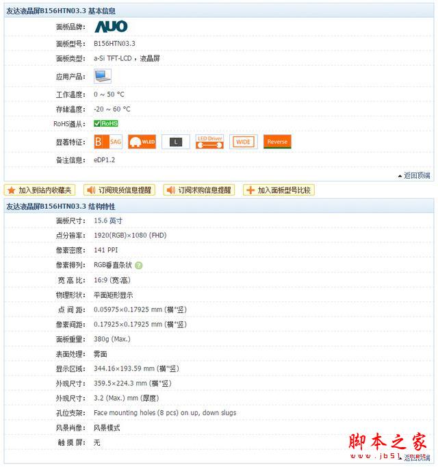 AOU 15.6寸 1920*1080 霧面 LCD