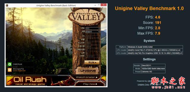 接下來的《Heaven Benchmark 4.0》測試是由俄羅斯Unigine游戲公司開發設計的一款 Benchmark 程序的最新版本,該程序是由Unigine公司自主研發的游戲引擎設計,支持 DirectX 9、DirectX 10、DirectX 11 與 OpenGL 3.2 API,通過數十個場景的測試最終測試出顯卡的實際效能。小蒼本測試得分請見下圖。Valley(山谷)是 Heaven(天堂)開發團隊一手打造的最新顯卡測試程序,可以在最大程度上榨干 GPU 顯卡資源。這次場景來到了一個優美空靈的山谷,群山環繞,郁郁蔥蔥,白雪皚皚,旭日初升,而且擁有極致的細節,每一片花瓣、每一株小草都清晰可見。測試結果同樣請見下圖。