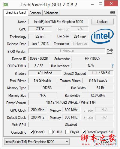 Intel Iris Pro Graphics 5200 顯示核芯