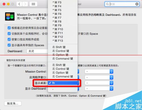 如果覺得Fn+F11離得太遠,可進入“系統偏好設置”-“mission control”-“顯示桌面”,修改為“Fn”,會更加方便操作。