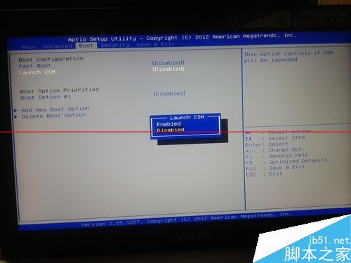 4、通過方向鍵選擇【Lunch CSM】選項,將其設定為“Enabled”3.點擊F10保存設置,重啟系統。