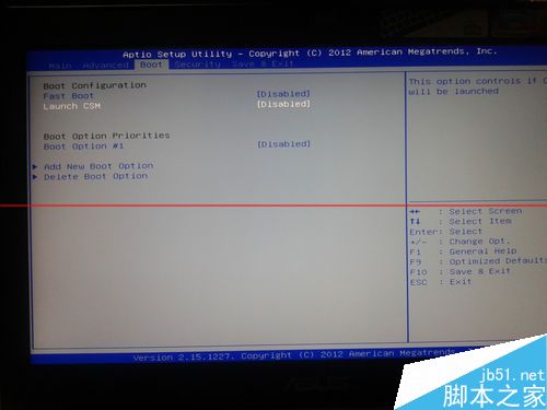 3、開機時再次按F2進入BIOS通過方向鍵進入【Boot】菜單,Lunch CSM 不再為灰色不可選狀態。