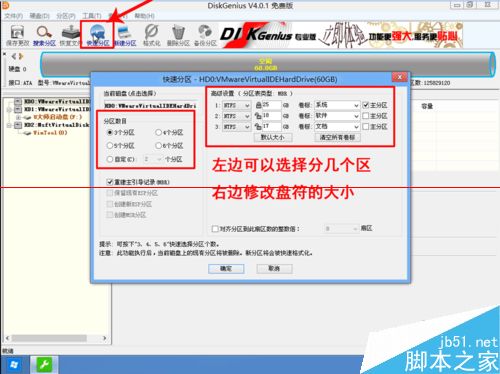 10、轉換MBR成功后,選擇快速分區,根據要求創建自己的分區。選擇完成后,點擊確定開始分區