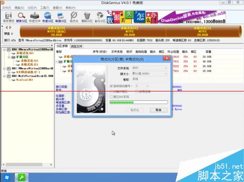 11、分區開始后,會出現格式化盤符的提示窗口,等待完成。退出DiskGenius軟件