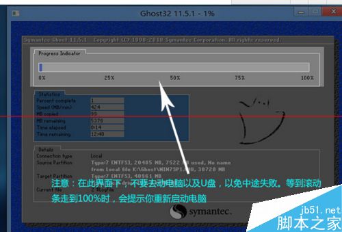 13、點完開始后就會出來如下圖所示的界面,這時候已經在安裝系統了