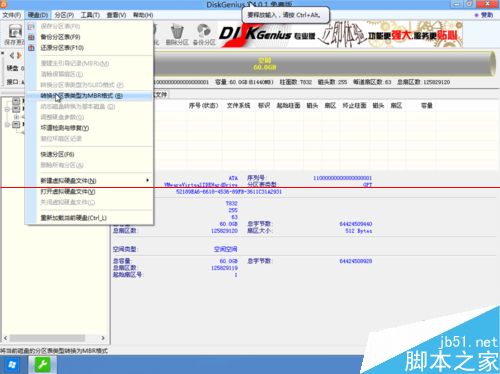 8、打開硬盤,點擊“轉換分區表類型為MBR格式”