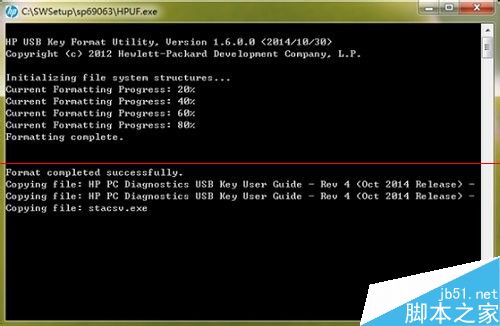 將顯示格式化 U盤和復制 U盤中的文件的狀態。