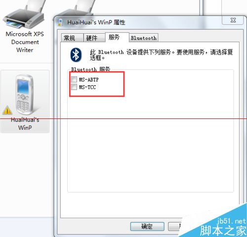 4、右鍵點擊手機圖標,選擇“屬性”——“服務“取消掉那些無驅動的服務后,點擊“確定”,設備管理器中“Bluetooth外圍設備”消失。