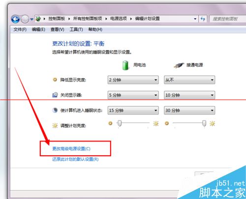 4、接下來(lái),在彈出的界面中點(diǎn)擊“更改電源高級(jí)設(shè)置”選項(xiàng),進(jìn)入高級(jí)電源設(shè)置選項(xiàng),在Windows8系統(tǒng)中可能操作略有改變。