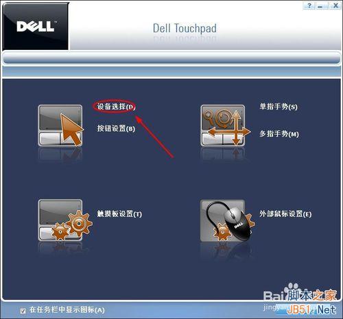 出現(xiàn)以上的圖標(biāo),就表明此時這臺電腦的觸摸板是不能使用狀態(tài),接著我們右鍵點擊該圖標(biāo),在彈出的選項里選擇"觸摸板屬性",然后就會彈出一個大的窗口,下圖是筆者的戴爾筆記本窗口,其他型號的電腦可能會有差別