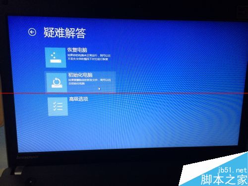 4、在”疑難解答“界面下點(diǎn)擊”初始化電腦“,然后點(diǎn)擊”下一步“