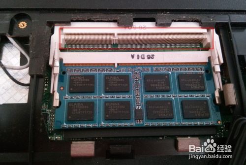 7、將內(nèi)存條插入到上圖(右)中紅色框內(nèi)位置,聽見“啪”一聲響,即安裝成功