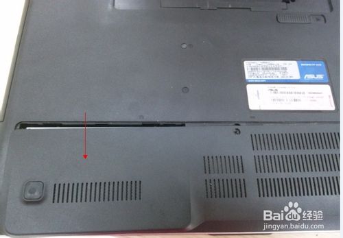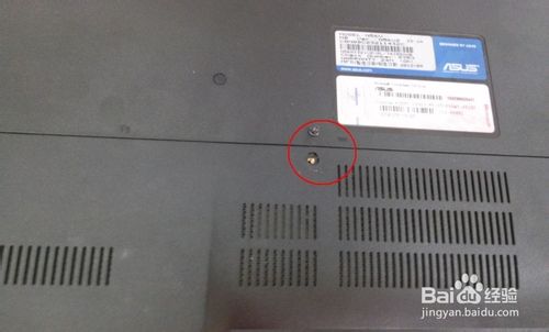5、卸下螺絲,我的電腦只需卸下此一個(gè)即可。按照下圖(右)中的方向?qū)⒑笊w取下