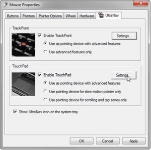 進入對話框后,選擇表示觸摸板的標簽(不同筆記本的觸摸板標簽名不同),確保其中的各個選項都是開啟的。