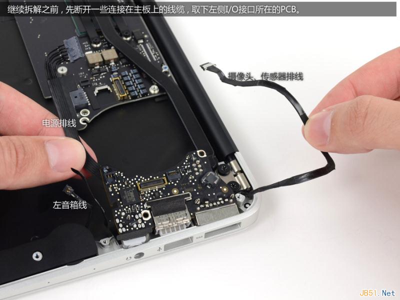繼續(xù)拆解之前,先斷開該機主板上的一些線纜,取下左側I/O接口所在的PCB。
