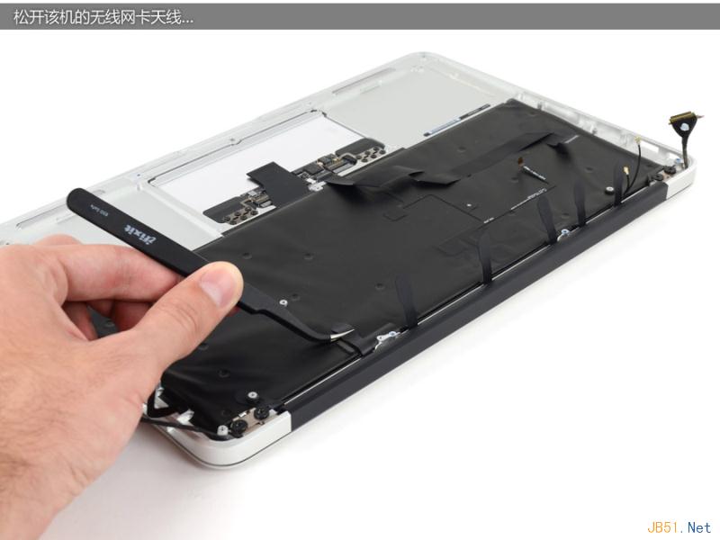松開固定在機身邊緣的無線網(wǎng)卡天線線纜。