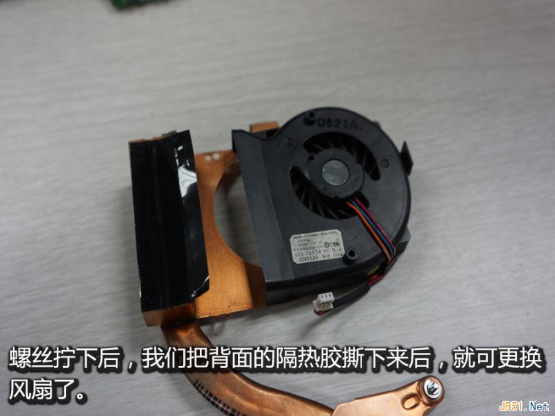 擰松螺絲后,我們把背面的隔熱膠撕下來(lái),就可以把新的風(fēng)扇安上了。
