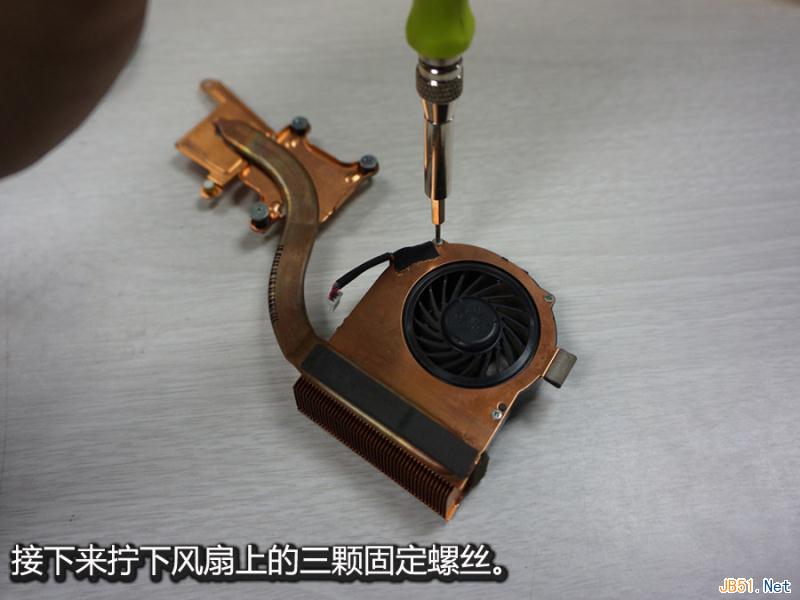 要更換風(fēng)扇,我們要繼續(xù)把散熱片上的三顆固定螺絲擰下來(lái)。