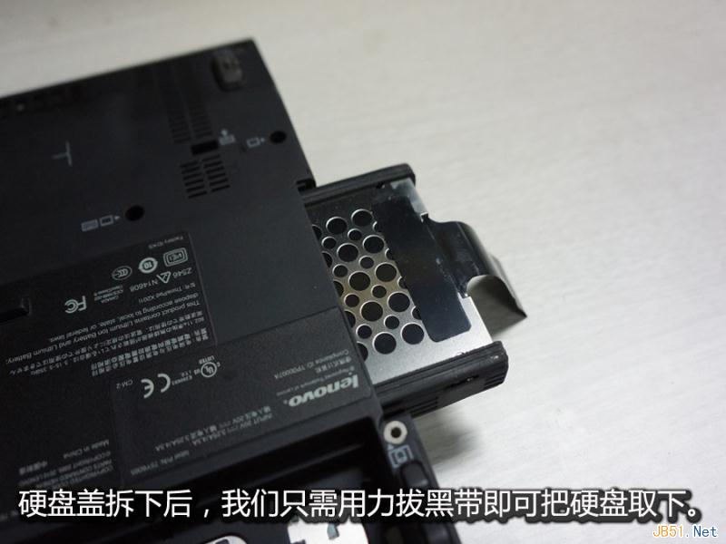 硬盤蓋拆下來(lái)之后,只需用力的拔出黑帶即可把硬盤取下。