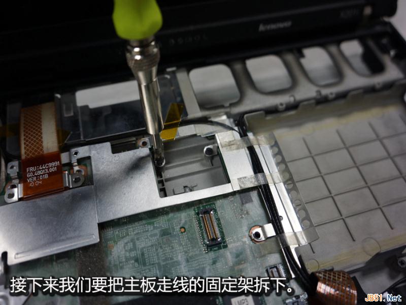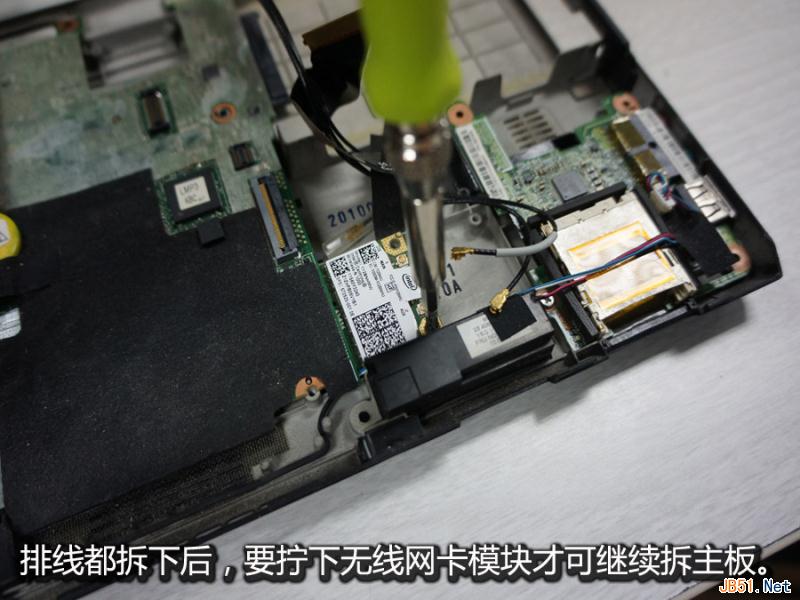 由于無(wú)線網(wǎng)卡固定著主板的一角,所以也要一起拆卸來(lái)。