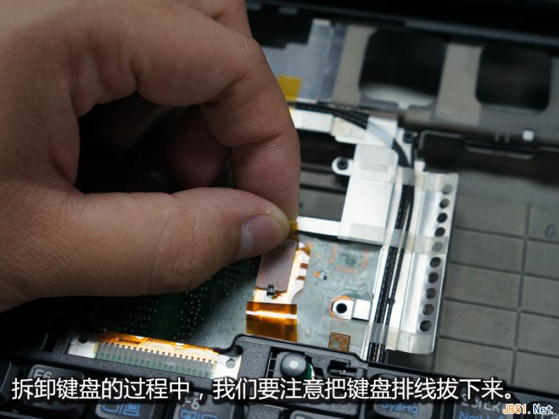 拆卸鍵盤的過(guò)程中,我們要注意把鍵盤排線取下來(lái)。