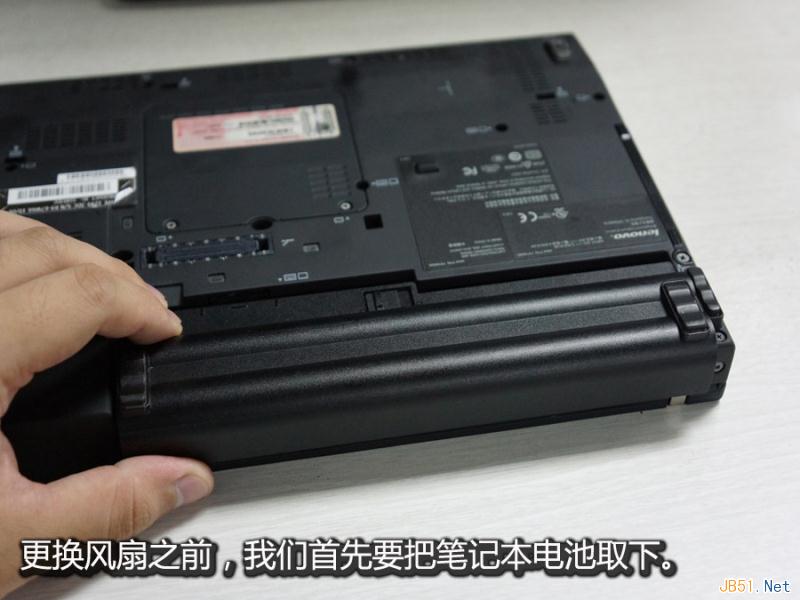 在更換風(fēng)扇之前,我們首先要把筆記本的電池取下。