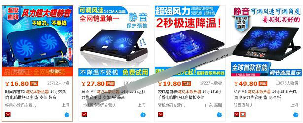 要了解筆記本散熱器抽風還是送風的好?其實要結果很簡單,我們基本對比一下市場上的普通底座式送風散熱器和抽風散熱器的價格,即可得出大致的結論,如下圖所示: