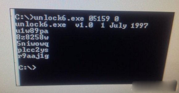 第五步:點擊開始—所有程序—附件—命令提示符,鍵入“unlock6 XXXXX 0”,其中XXXXX代表第四步中的溢出密碼。