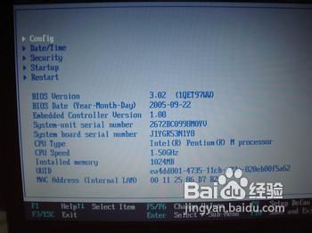 在ThinkPad BIOS 設置界面中,分為上下兩部分,上半部分包含Config、Date/time、Security、Startup、Restart、HDDDiagnostics Program等六個設置選項,下半部分主要顯示本機的一些系統信息。