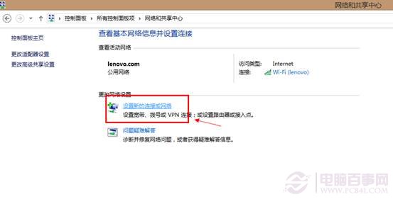 打開網絡和共享中心,里面選擇設置新的連接或網絡,如圖: