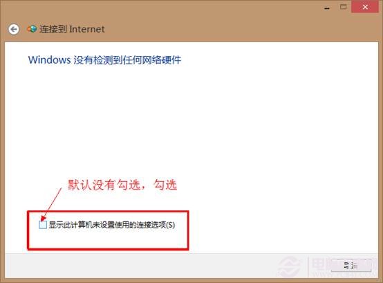 因為Yoga是不帶有線網卡的,所以默認情況下里面沒有ADSL撥號,我們需要點擊顯示此計算機未設置使用的連接選項,勾選這個方框,如圖: