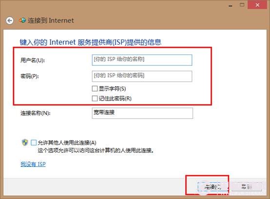 輸入好無線ADSL撥號的用戶名和密碼,點連接即可,如圖:
