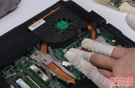 第3步:CPU與散熱模塊之間的硅膠需要更換了,這層硅膠是用來把CPU的溫度導到散熱模塊上去,如果硅膠干澀,散熱能力下降,CPU熱量散不出去,筆記本速度一樣會變慢!