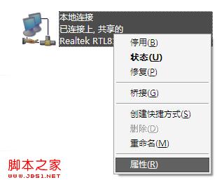⒓接下來,就要設置本地連接了,如下圖,右鍵單擊本地連接,選擇“屬性”