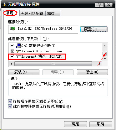 ⒋進入屬性窗口按照紅色箭頭所示,依次點擊“無線網絡配置”----“添加”