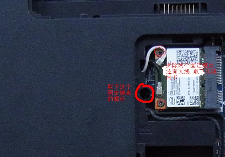 首先拆除無限網(wǎng)卡邊上的鍵盤固定螺絲