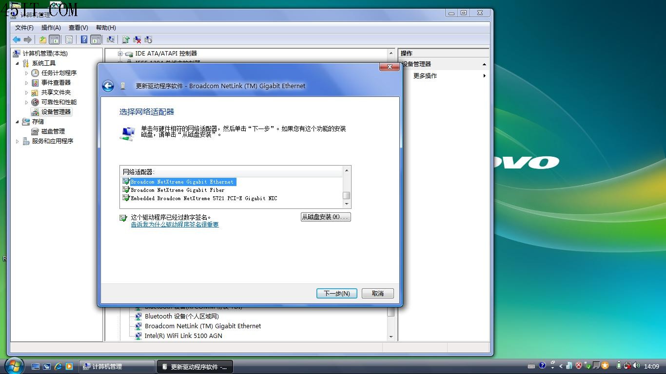 通過(guò)驅(qū)動(dòng)更新方式安裝目錄為LAN//WinVista//IA32//b57nd60x文件(如圖)