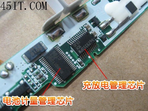 保護板正面設有電池計量管理芯片和充放電管理芯片