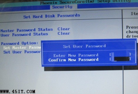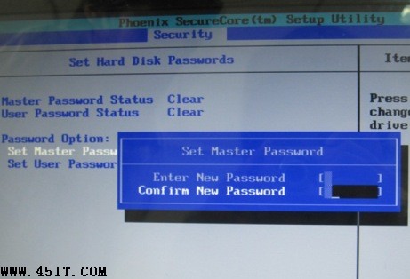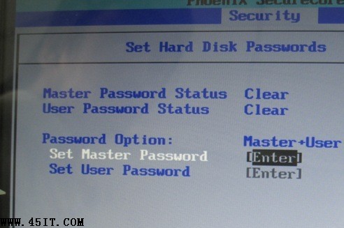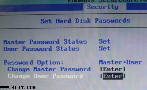 硬盤密碼分為Master密碼和User密 碼,無法直接設置User密碼